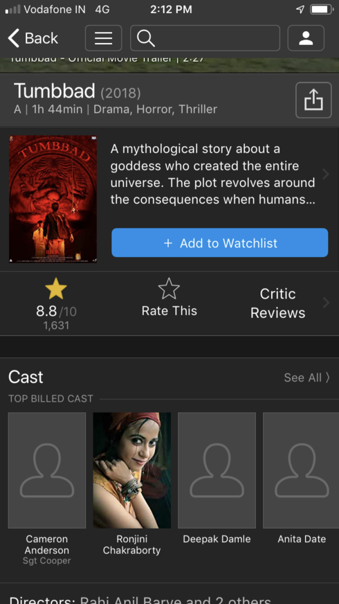 Tumbbad Cast Imdb : Moviesjoy is a free movies streaming site with zero ads. Tumbbad Cast Imdb - Screening of movie tumbbad with cast sohum shah and amruta khanvilkar :
