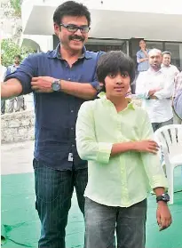 Venkatesh S Son To Play Cameo In Gopala Gopala India Forums - While everybody was posing for camera, arjun in jest imitated his dad venkatesh by folding the shirt's hands.